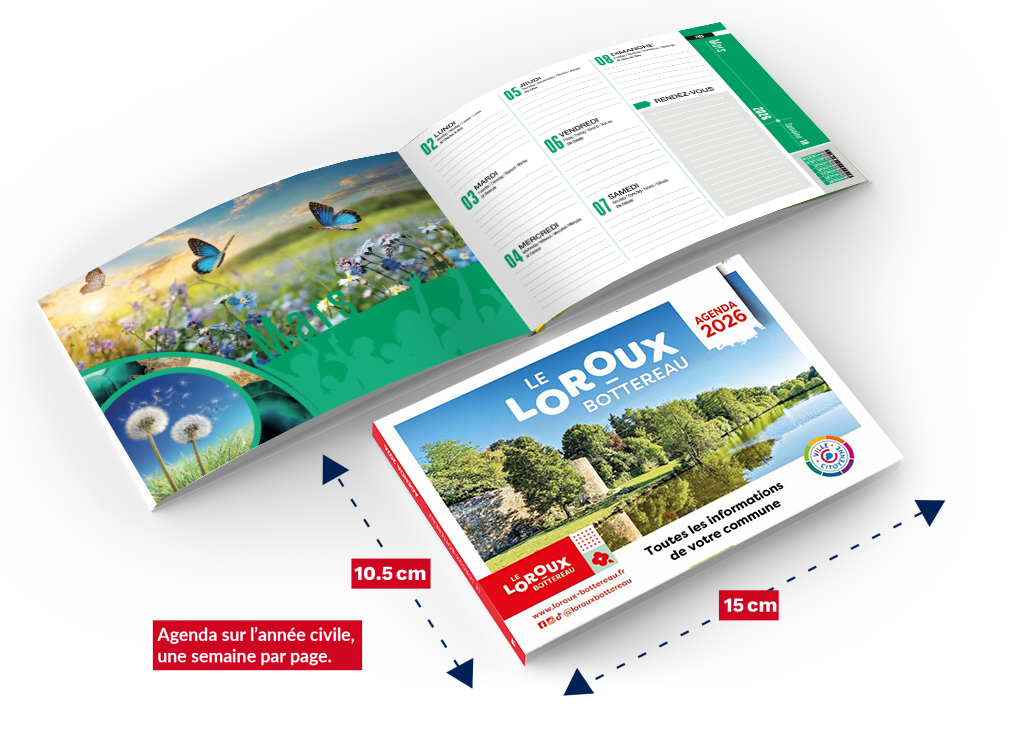 Cet agenda est composé d’un mensuel de l’année civile personnalisable avec vos événements à venir. Viendront se rajouter dans les premières pages les informations de votre collectivité. Distribuez-le en début d’année dans les boîtes à lettres de tous vos administrés.