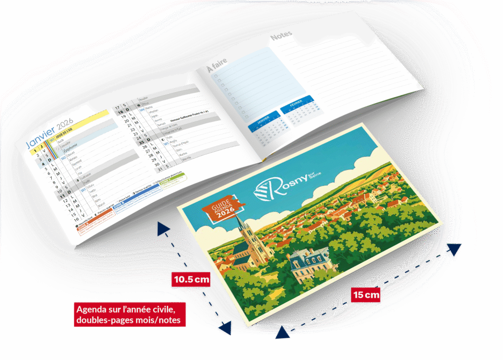 Cet agenda est composé d’un mensuel de l’année civile sur doubles-pages mois/notes. Il est personnalisable avec vos événements à venir. Viendront se rajouter dans les premières pages les informations de votre collectivité. Distribuez-le en début d’année dans les boîtes à lettres de tous vos administrés.