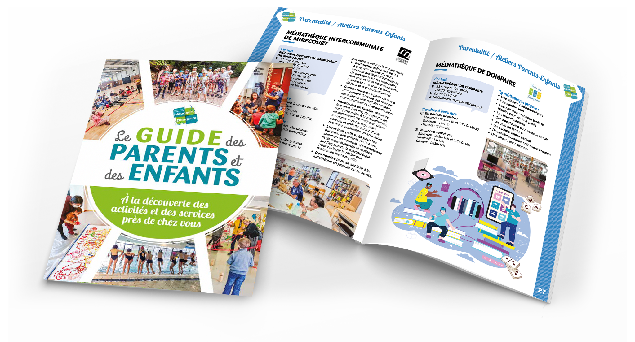 Agendas, bulletins, guides pratiques, guides touristiques, guides écologiques, magazines, mobiliers urbains, plans, publicité, régie publicitaire, création graphique, impression